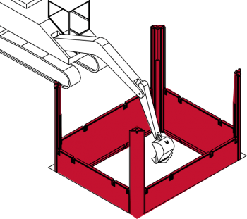 while outer panels and corner posts are pushed to proper depth with excavator.